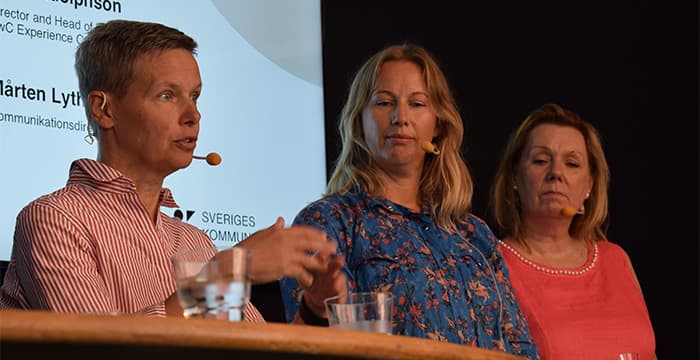 Sveriges bjöd in en panel under Almedalsveckan bestående av Maria Rosengren, Business Unit Director på Kantar Sifo, Klara Adolphson, Director and Head of Experience delivery på PwC Experience Center, Siri Wikander, Director of People Growth på Scandic Hotels, Mårten Lyth, kommunikationsdirektör på Spendrups och Hanna Brogren, generalsekreterare på Sveriges Kommunikatörer, för att diskutera kommunikativt ledarskap.